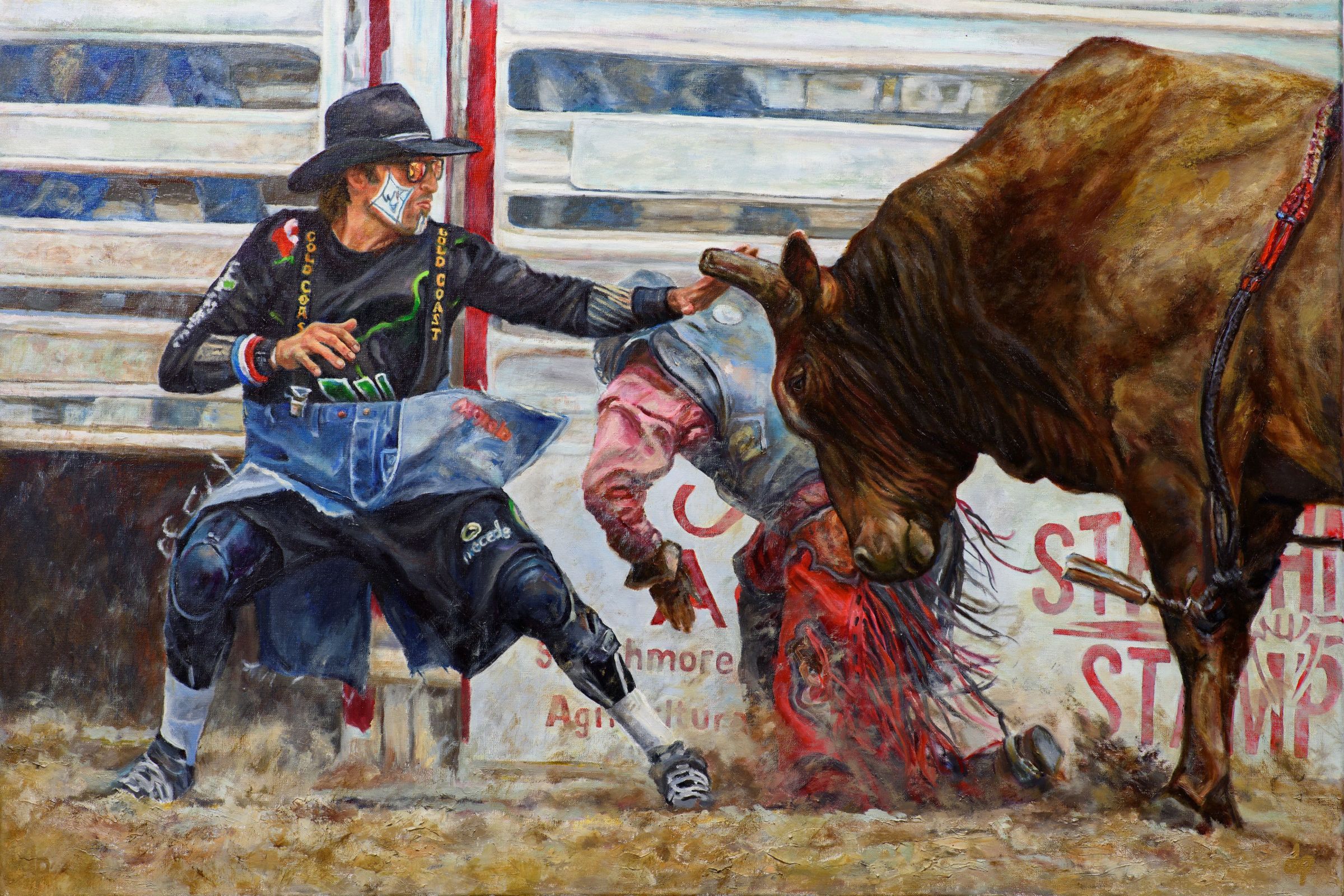 Conference Call Oil on Linen Gallery Wrap 36 x 72″ $10,000 Goin” In Slow Oil on Linen 30 x 40″ $4,000 Rodeo’s Over Oil on Linen 16 x 20″ $875 Warmin’ Up Pastel 23 x 18″ $1,450 Hold Onto Your Hat Oil on Linen 24 x 24″ $2,000 100 Years Oil on Linen Panel 42 x 84″ $15,000 Damn Rope Oil on Linen Panel 36 x 36″ $4,200 Ain’t No Merry-Go-Round Oil on Linen 48 x 36″ $5,000 Fancy Like Oil on Linen Panel 36 x 18″ $2,500 R.C. Oil on Canvas 48 x 48″ $9,500 Eye On The Competition Oil on Linen 20 x 24″ $1,800 Anger Management Oil on Linen Panel 16 x 29″ $875 Comin’ Around Oil on Linen Panel, 24 x 24″ $2,000 Behind The Chutes Oil on Linen Panel, 12 x 16″ $475 Traditional Dancer Oil on Linen Panel 48 x 24″ $3,500 Chute Talk Oil on Linen Panel 12 x 22″ $800 Quiet Dignity Oil on Linen Panel 48 x 24″ $3,500 Settin’ Up (Study) Graphite on Paper 5.5 x 7.5″ $100 It’s How You Hold Your Mouth Oil on Linen Panel 22 x 28″ SOLD Mac and Cheese OIl on Linen Panel 24 x 36″ SOLD Where Angels Fear to Tread 24 x 36″ SOLD I Don’t Think So Oil on Linen Panel 30 x 30″ SOLD Everybody’s Watching Oil on Linen Panel 24 x 36″ SOLD Let’s Dance Oil on Linen Panel 48 x 36″ SOLD Catchin’ Up Oil on Linen Panel 20 x 24″ SOLD Makin’ a Coil Oil on Linen Panel 16 x 20″ SOLD Vertical Take Off Oil on Linen 36 x 24″ SOLD Saddle Bronc Graphite on Paper 12 x 8.5″ SOLD Perusin’ Oil on Linen Panel 12 x 9″ SOLD Makin’ A Loop Oil on Gallery Wrap 28 x 22″ SOLD Perusin’ Oil on Linen Panel, 12 x 9″ SOLD Storm Warning Graphite on Paper 14 x 9.75″ SOLD Shotgun and Spur Oil on Linen Canvas 24 x 12″ SOLD Punch Line Oil on Canvas 40 x 30″ SOLD Dally and Done Oil on Linen Panel 16 x 20″ SOLD Slip and Slide Oil on Linen Panel 16 x 20″ SOLD Are You Done Yet? Oil on Linen Panel 24 x 12″ SOLD Behind The Chutes 2 Oil on Linen Panel 12 x 24″ $SOLD 1,2,3, (triptych) Oil on Linen 8 x 6″ each SOLD Roughing Up Oil on Linen 24 x 24″ SOLD Looking Forward Oil on Linen 24 x 24″ SOLD Enough Rope Oil on Linen 9 x 12″ SOLD One of These is Not Like The Others Oil on Linen 18 x 24″ SOLD Getting Ready Oil on Linen 24 x 30″ SOLD First Step Oil on Linen 20 x 16″ SOLD Taking a Break Oil on Linen 20 X 16″ SOLD Ready Oil on Linen 20 x 16″ SOLD Paint Oil on Linen 18 x 18″ SOLD All Black” Oil on Linen Panel 29 x 16 SOLD Wild Ride Oil on Panel, 9 x 12″ SOLD Steer Into The Skid Oil on Linen Panel, 8 x 10″ SOLD Mantracker Pastel SOLD Selfie Oil on Linen Panel 8 x 16″ SOLD Multi-tasking Oil on Linen Panel 24 x 18″ SOLD